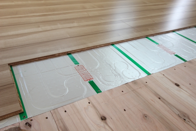 ガス床式暖房はガスで作り出したお湯を床下に循環させ、その熱で部屋全体を温めます。